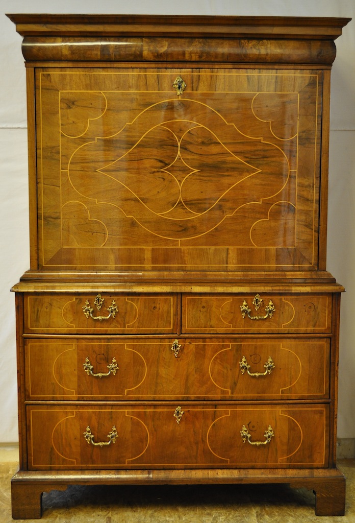 - het ontbrekend notenfineer terug geplaatst en verlijmd met beenderlijm