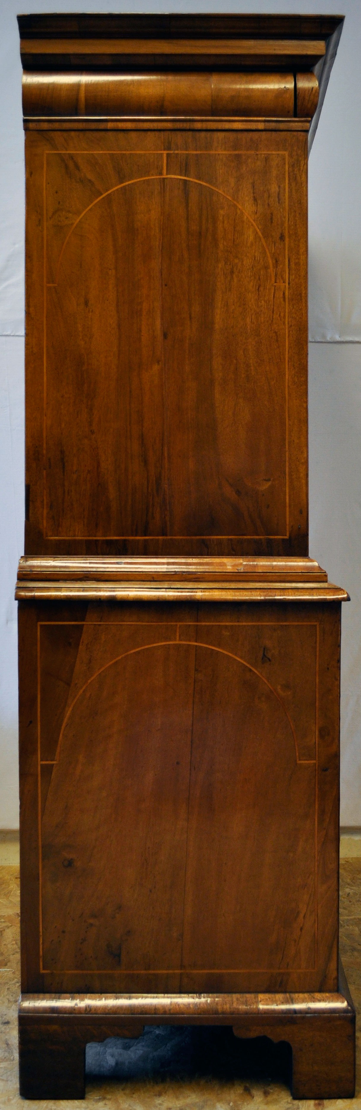 - de ontbrekende notenhouten profiellijst van de kap terug geplaatst en het notenhout verlijmd met beenderlijm